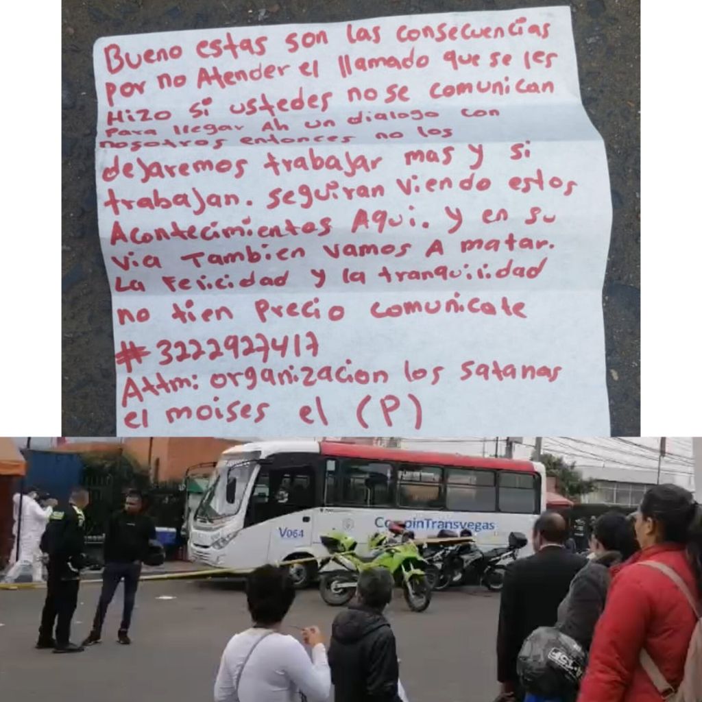 Según la investigación de las autoridades por medio del CTI que es el Cuerpo Técnico de Investigación) de la Fiscalía, aparte de hallar la identidad del fallecido, hallaron una carta de una Banda Criminal, llamada «Los Satanás» que presuntamente se dedican a las extorsiones a comerciantes y busetas del transporte público en Soacha.