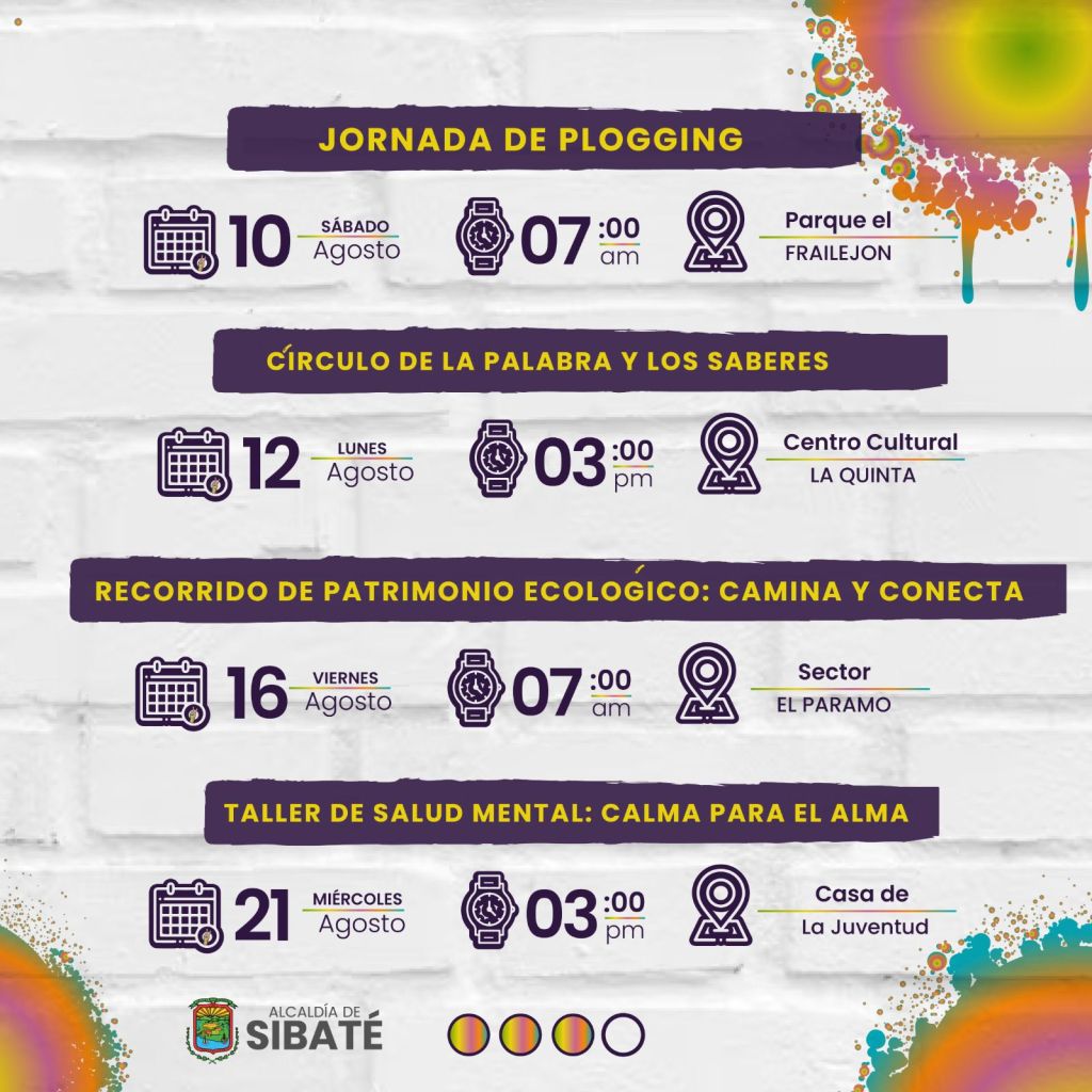 Sibaté. Las inscripciones serán previas a cada actividad dándole click en el botón que aparece a continuación: