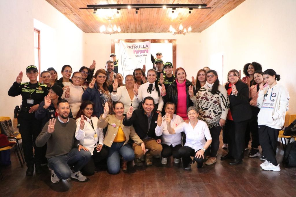 El alcalde de Sibaté, Luis Manuel González, y la gestora social, Melissa Cubillos, presentaron a las mujeres del municipio la Patrulla Púrpura, en alianza con la Policía Metropolitana de Soacha (MESOA).